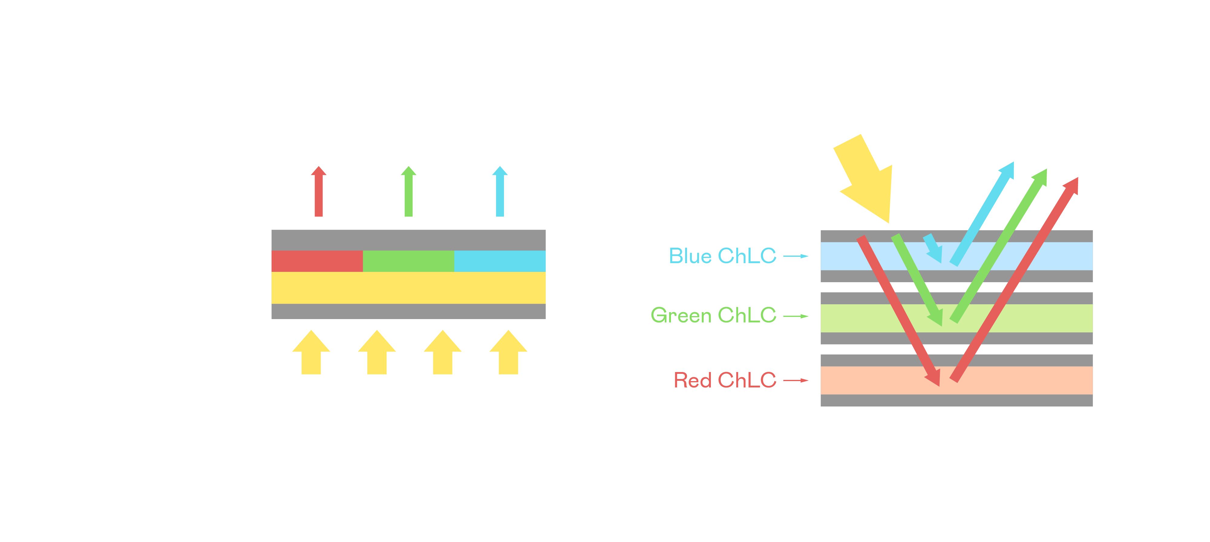 YY易游m6米乐胆固醇液晶显示器是由红、绿、蓝三层胆固醇液晶面板堆叠而成,并采用无彩色滤光片设计,减少环境光在反射过程中的损耗。